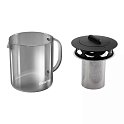 Очень солидный чайник с большим объемом. Нет труднодоступных мест и удобно мыть. Также у чайника интересное зеркальное напыление, крышка при закрытии фиксируется поворотом. Ситечко металлическое из очень мелкой сетки, заварка в колбу с водой не попадает. Удобный носик, заварка не выливается. В общем просто симпатичный и радует глаз