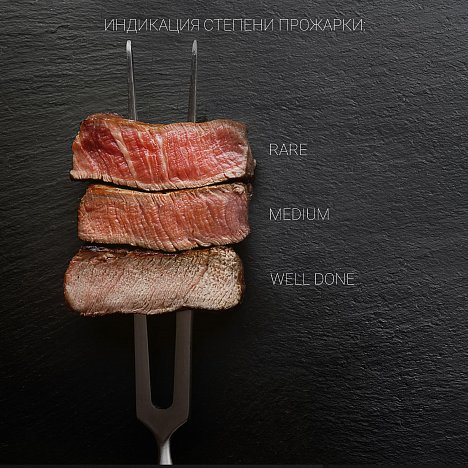 3 степени прожарки: RARE, MEDIUM, WELL DONE.