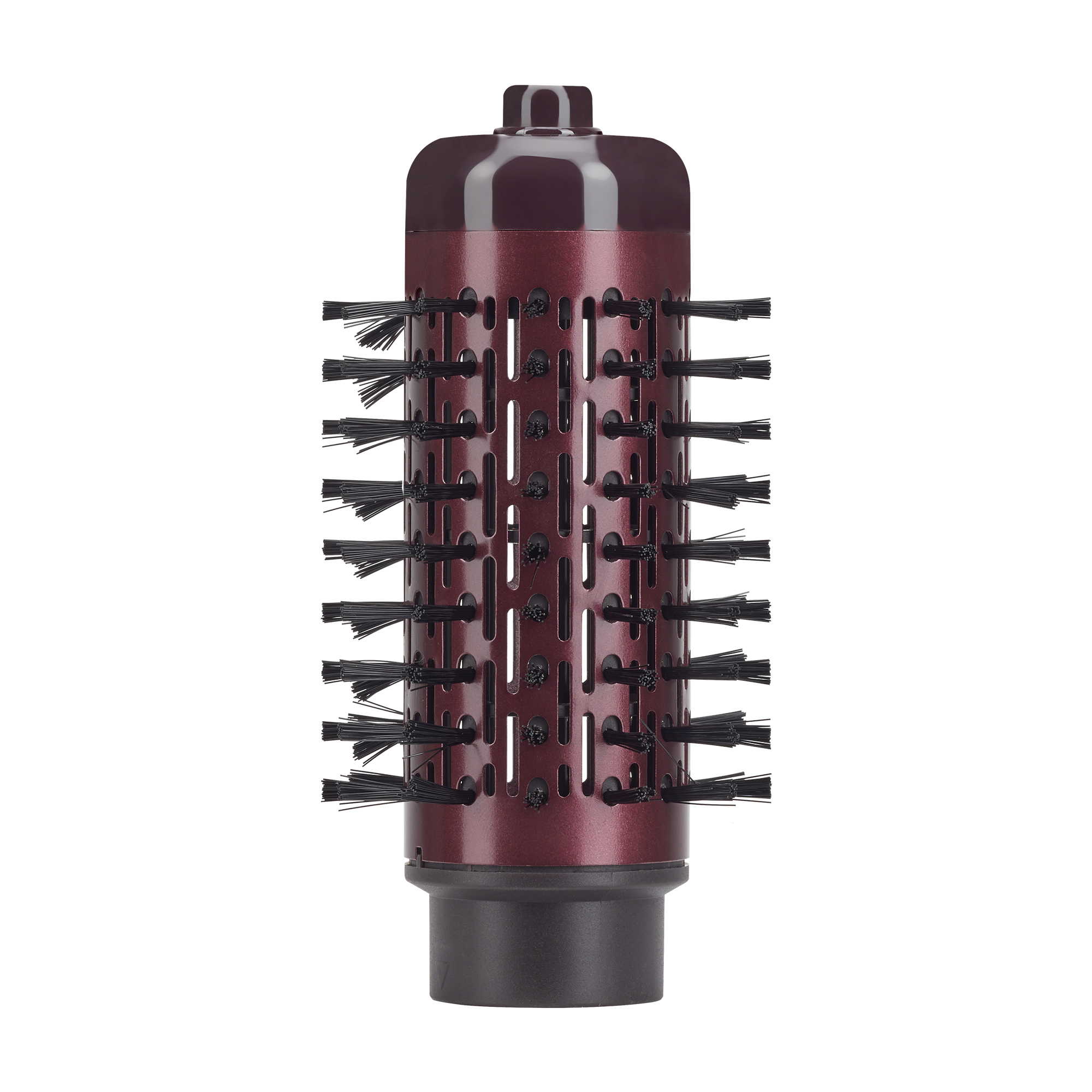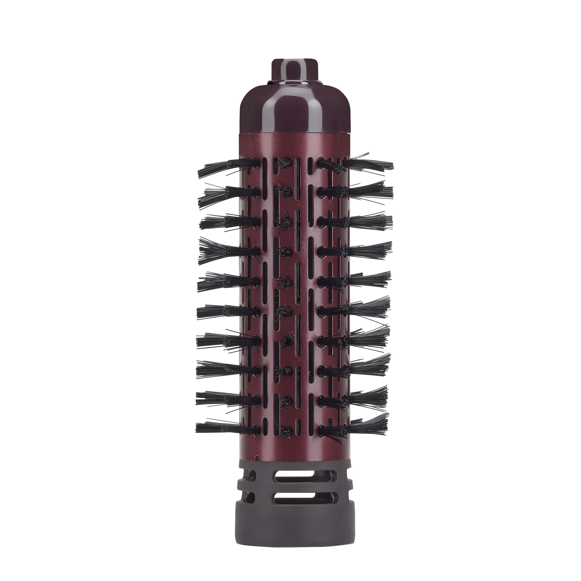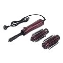 Представленная модель фена-расчески укомплектована двумя круглыми насадками-щетками различных диаметров: 50 мм и 35 мм. Щетка с большим диаметром поможет создать желаемый прикорневой объем. Насадка меньшего размера отлично подойдет для завивки. Обе насадки имеют керамическое покрытие, которое обеспечивает равномерный нагрев потока воздуха и защищает волосы от персушивания.