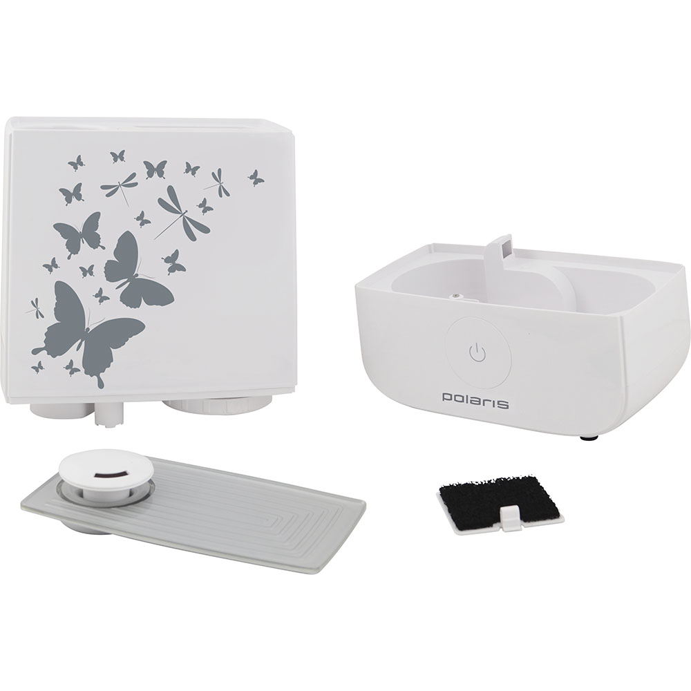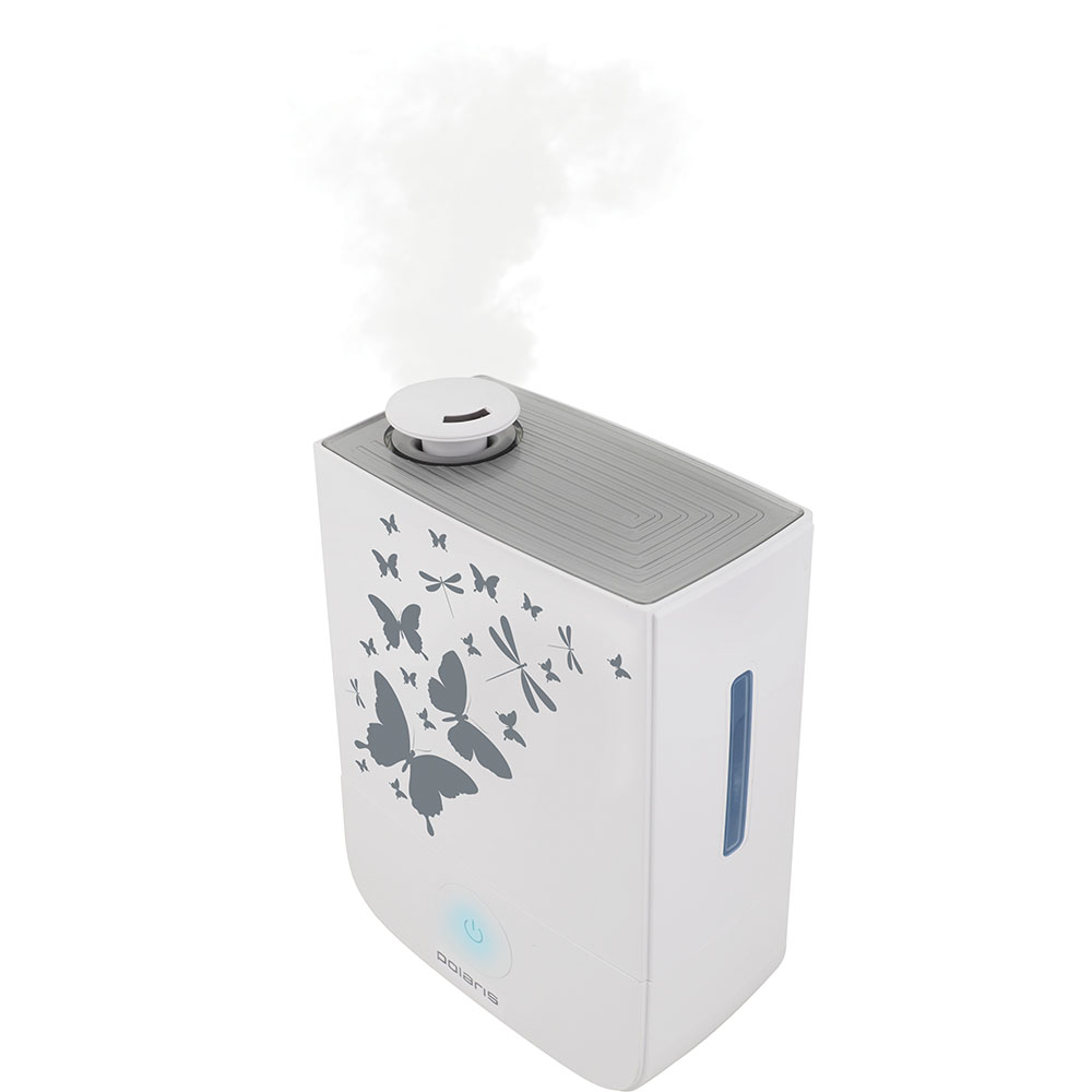 Увлажнитель воздуха Polaris PUH 3504 имеет современный дизайн, подходящий практически под любой интерьер. У него лаконичная форма и неброский рисунок на корпусе. Прорезиненные ножки позволяют ему устойчиво зафиксироваться в месте установки.