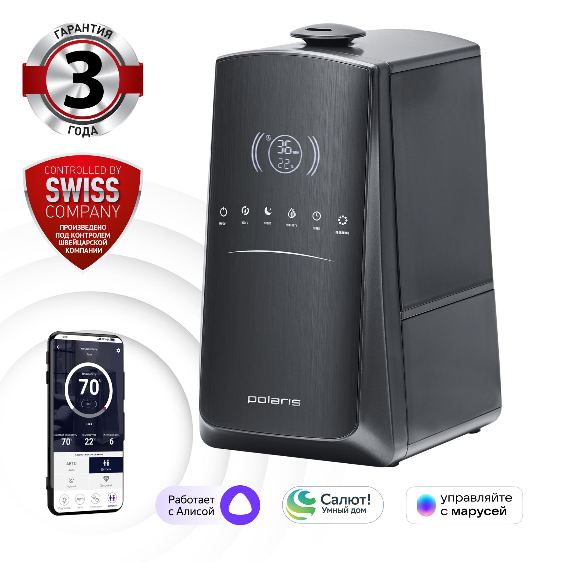 Подробная информация о работе ультразвукового увлажнителя воздуха в приложении Polaris IQ Home: