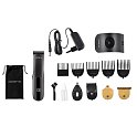 Комплектация: прибор, 5 насадок для регулировки длины стрижки, 3 лезвия, насадка-шейвер (для бритья), насадка-триммер для носа и ушей, сумка для хранения, зарядная база, щетка, масло, зарядный адаптер со шнуром 1,8 м
