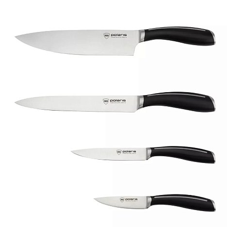 Преимущества набора ножей Polaris - двусторонняя заточка лезвий. Благодаря этому, ножи позволяют вам быстро и аккуратно нарезать продукты. Материал изделий - нержавеющая сталь X30Cr13, что гарантирует его долговечность и стойкость к коррозии.