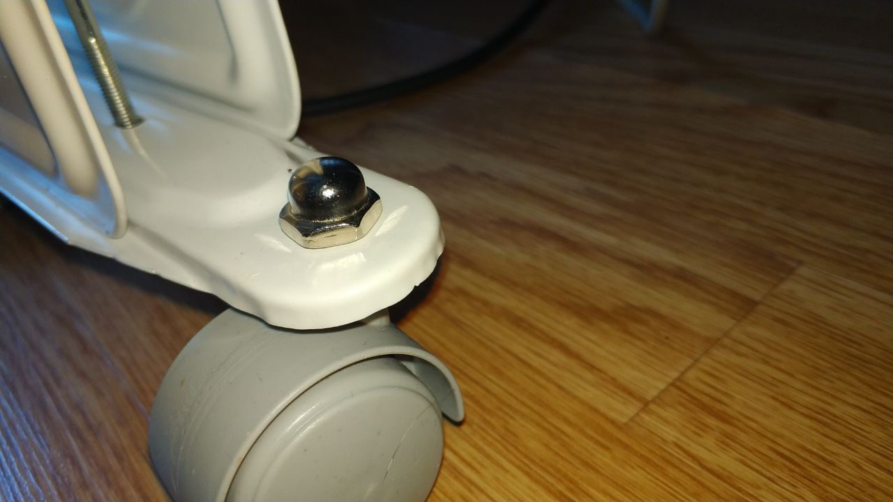 Пришёл без детали, которая крепится сверху ролика. Сама деталь не указана в комплектации, она похожа на „Гайка колеса", так определил Google поиск по фото.
