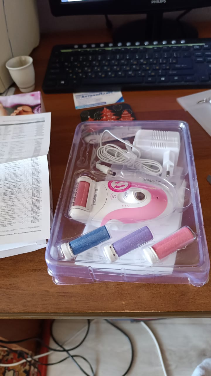 В набор входят 3 роликовые насадки с абразивной поверхностью для кожи разной чувствительности.