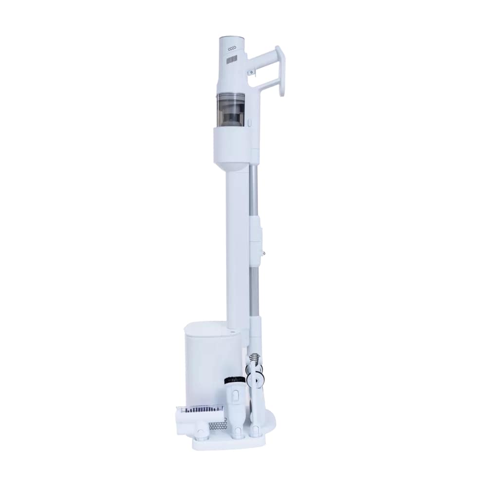В комплекте есть зарядная база с пыленакопителем 2 л, обеспечивающая удобное хранение прибора и доп. насадок, его зарядку и самоочистку.