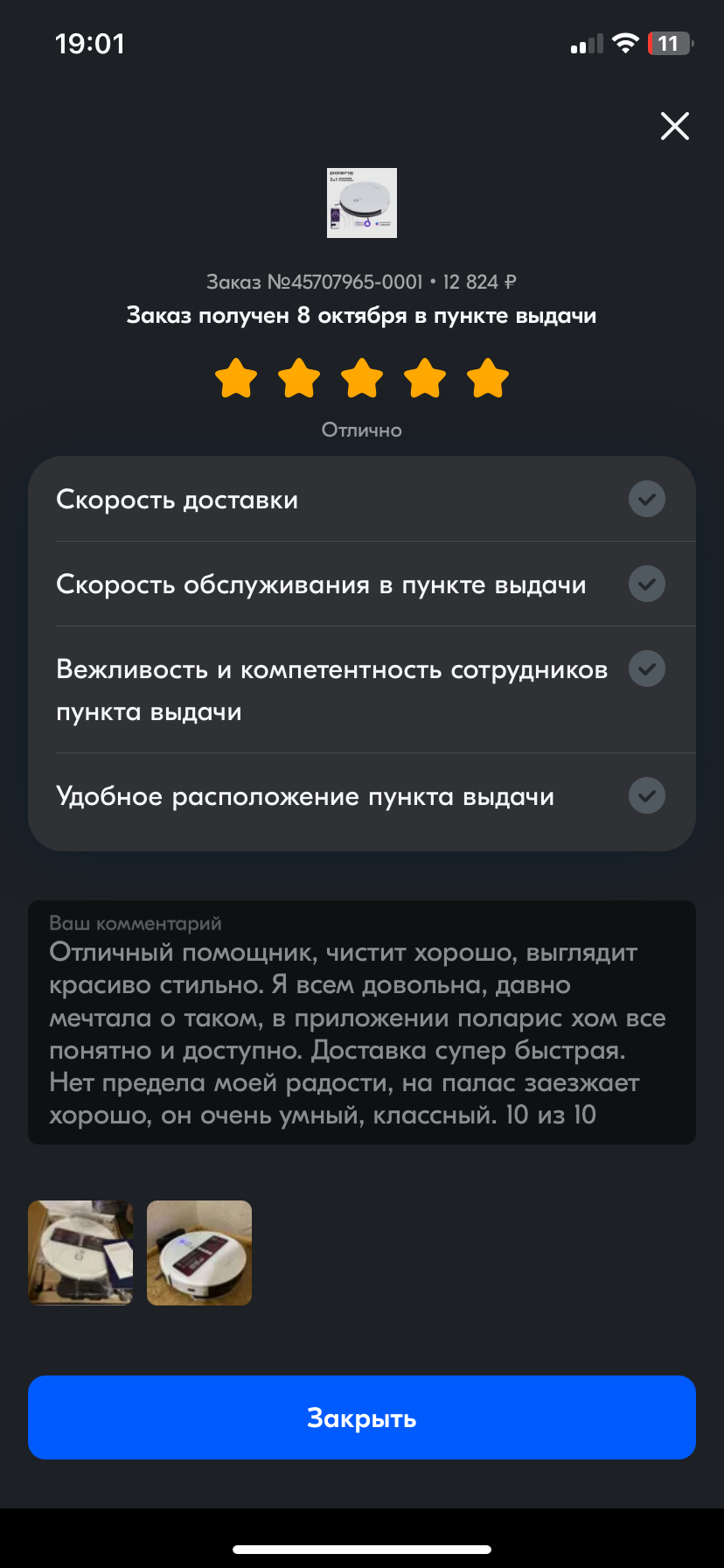 Подробная информация о работе робота-пылесоса в приложении Polaris IQ Home: