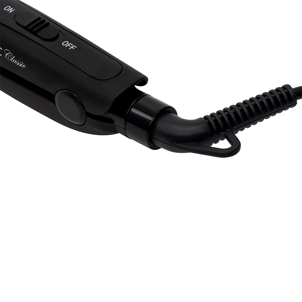 Дополнительное удобство использованию прибора придает шарнирное крепление шнура. Благодаря такой конструкции он способен крутиться вокруг своей оси, что препятствует перекручиванию и перегибанию. Кроме того, это дает максимальную свободу движениям в ходе создания прически.