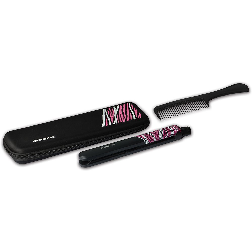 Пластины надежно фиксируются в закрытом положении во избежание их возможной поломки в процессе хранения. В качестве приятных бонусов в комплекте к стайлеру прилагаются расческа а также термостойкая сумочка-косметичка для удобной транспортировки и хранения прибора. При наличии вопросов, касающихся данной модели, консультанты интернет-магазина shop-polaris.ru с готовностью на них ответят.