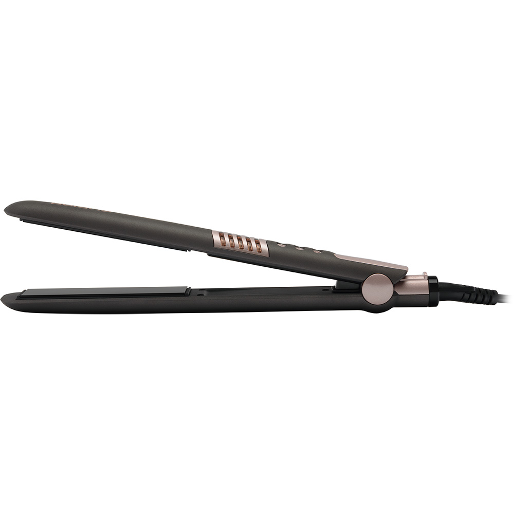 Пластины плойки имеют керамическое покрытие, которое оказывает благоприятное воздействие на волосы. Керамика запечатывает волосяные чешуйки, тем самым сохраняя в них естественною влагу, не допуская их пересушивания. Таким образом, стайлер подходит для применения даже на ослабленных, окрашенных и поврежденных локонах.