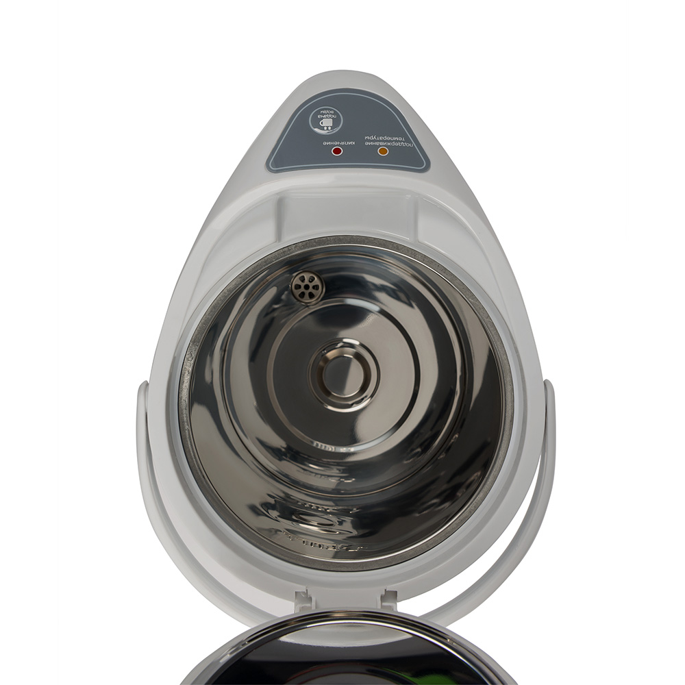 Когда вода закипает, индикатор нагрева «HEATING» гаснет, и загорается индикатор активации функции KEEP WARM – поддержания температуры. Для повторного кипячения воды необходимо нажать кнопку «REBOIL». В отключенном состоянии термопот поддерживает температуру при закрытой крышке. Вода остается теплой до 4-х часов при максимальном заполнении внутренней колбы, созданной из высококачественной нержавеющей стали.
